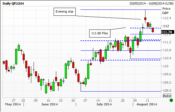 UK TECHS: Gilts swinging lower on break of 111.88 Fibo