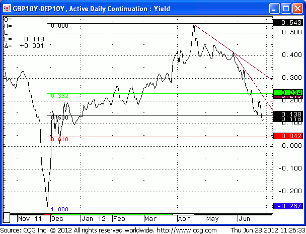 UK TECHS: 10yr Gilt-Bund faces support at 10bp then 4bp