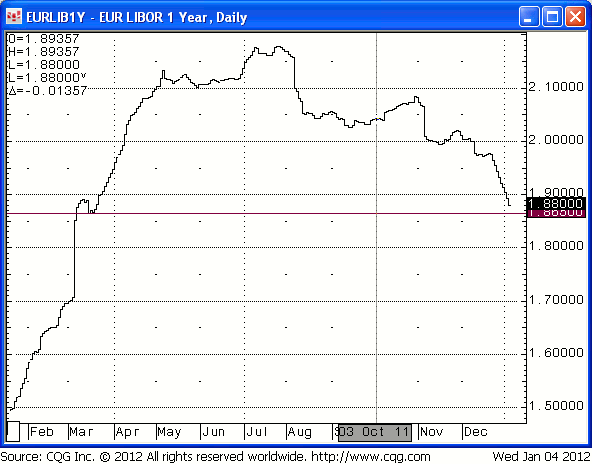 EUR GOVTS: EUR 3M LIBORs over 1bp lower, GBP up, USD flat