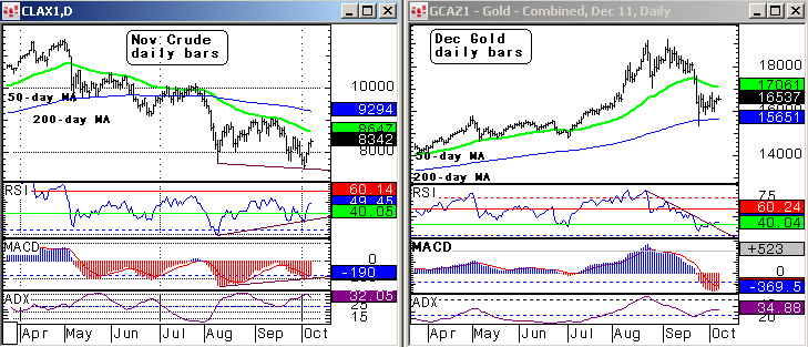 US TECHS: Commodity Outlook: Oil up again, gold lifts (chart)